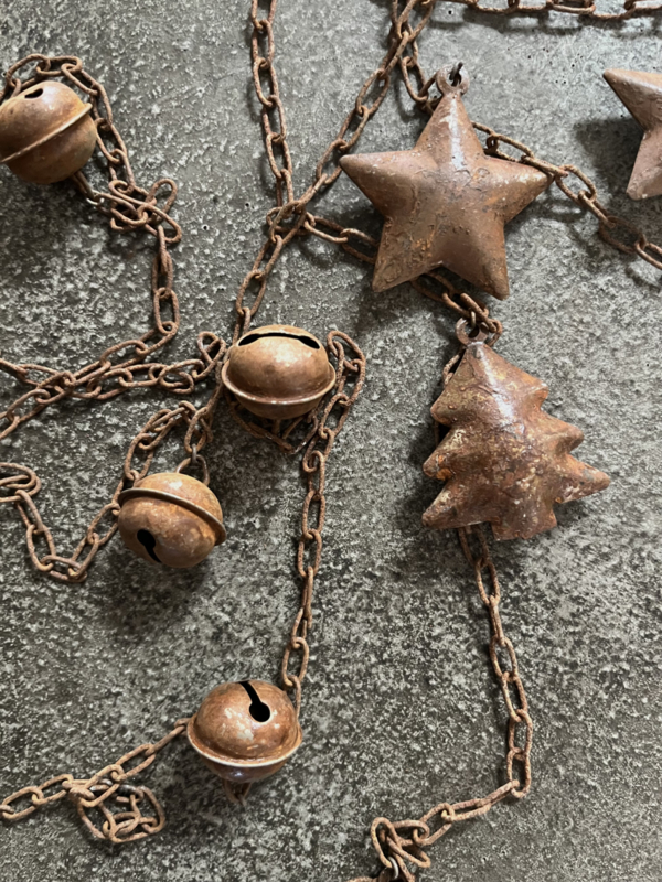 Stoere roestige slinger met roestige hangers